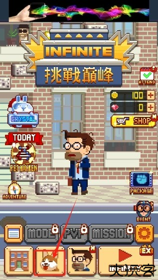 挑战巅峰中文版,英文名为Infinite Stairs,以轻度休闲为主题的快节奏益智攀爬楼梯小游戏,整体画面清新简易,采用经典的像素风格进行打造和设计。挑战巅峰中文版下载完成后,游戏中不但拥有多个不同主题的场景供玩家解锁挑战,还提供了丰富多样的宠物和角色造型任君挑选。另外,游戏的玩法十分的通俗易懂,玩家只需要点击左侧的转向和右侧的攀爬按钮,并根据不同场景中所呈现的楼梯走向快速实现攀爬即可。