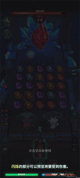 1、游戏的基础玩法就是卡牌结合三消,玩家可以拖动卡牌到元素球区,松开就可以使用。