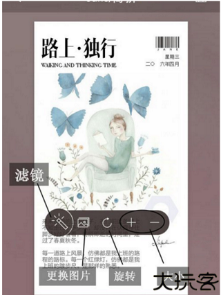 4、单击图片就可以对其进行滤镜、更换图片、旋转和大小方面的调整。