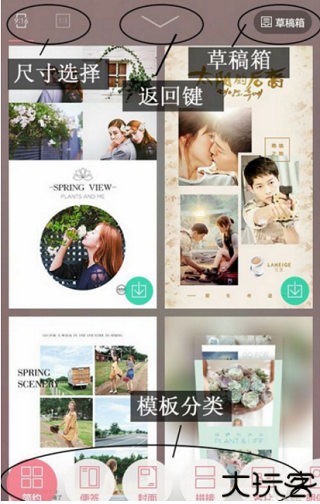 1、进入模板区,选择合适的模板类型,可以将未完成的拼图存至草稿箱。