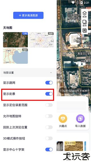 1、集合各种厂商的地图图源,有着街景地图、影像地图、实景地图等等导入自定义图源。