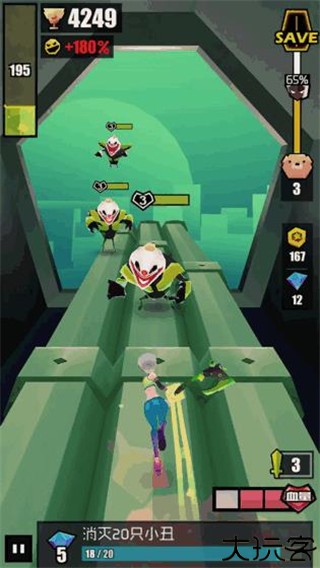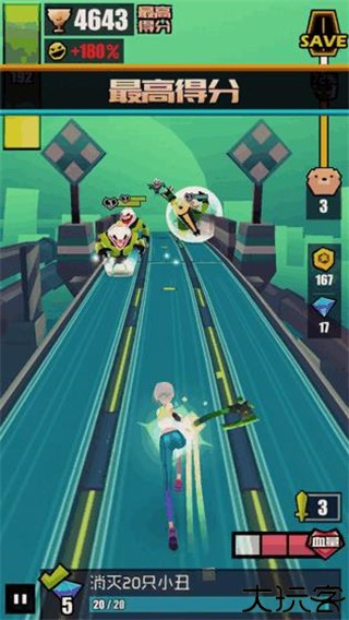 3、不过连贯的动作带来的快节奏操作,在跑道有限制的场景中,容易让人忘记主次。你会发现跑着跑着容易把重点放在打怪上,而忽略了跑酷的部分,然后轻易死在了简单的障碍上。所以在玩的时候别被怪物分了心,还是要留意路上的障碍物。