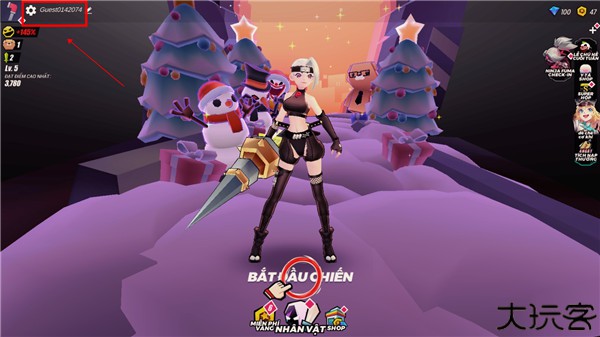 1、进入游戏后的语言默认是英文的,首先根据系统指引把新手教程渡过,来到主页后点击左上角的设置。