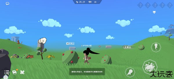 6、当玩家靠近采集素材时,右侧将出现材料名按钮,点击即可采集。