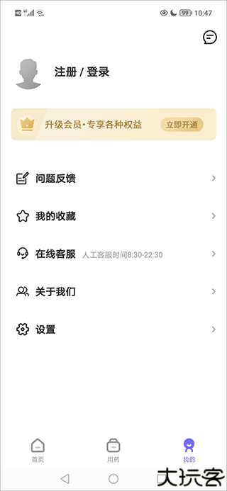 1、用户打开软件后,在“我的”页面找到并点击“注册/登录”按键。
