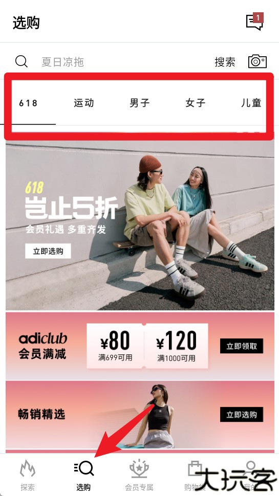 2、“选购”页中快速浏览男女童装与运动专区,自由筛选搭配。