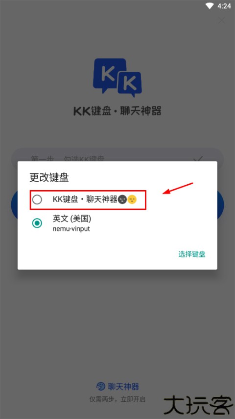 1、点首页“启用键盘”,跳转设置中开启KK输入权限。