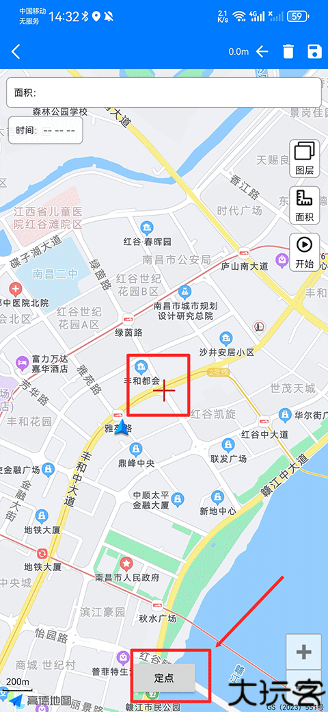 3、出现红色标记点后,将标记点放在你需要的位置上,点击定点。