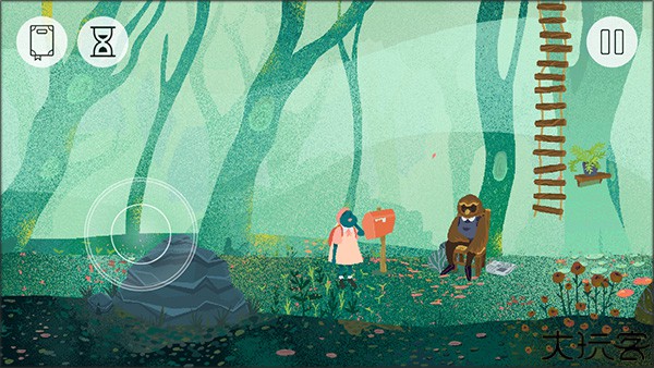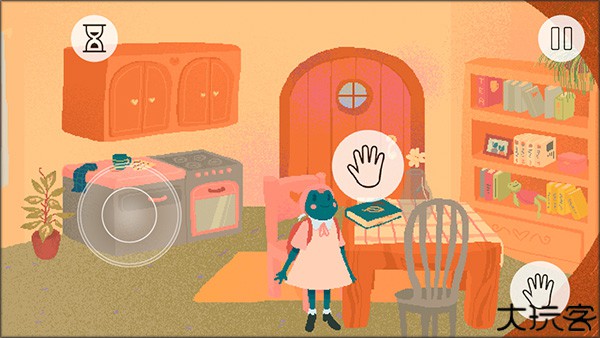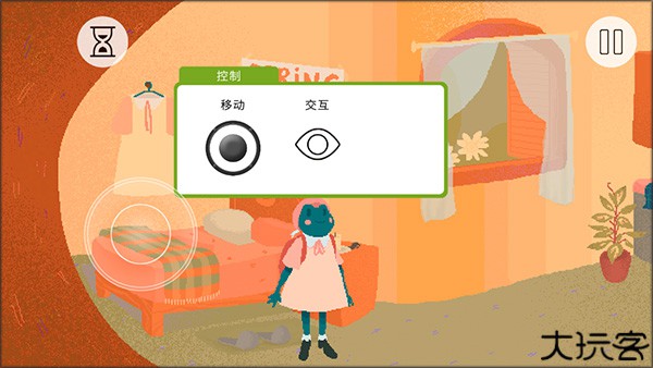 2、通过左边的轮盘以进行控制对人物的移动,出现类似眼睛图标的物体可以与其进行交互。