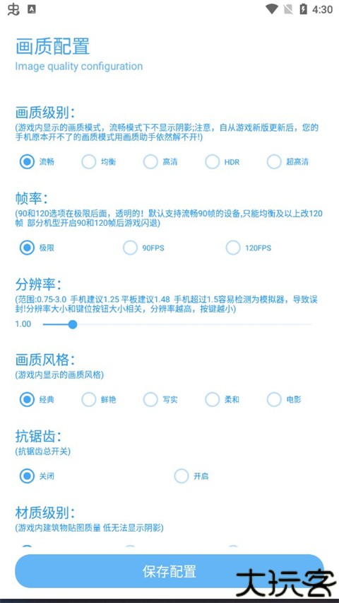 结合机型性能与游戏需求,手动调整图像帧率等内容。