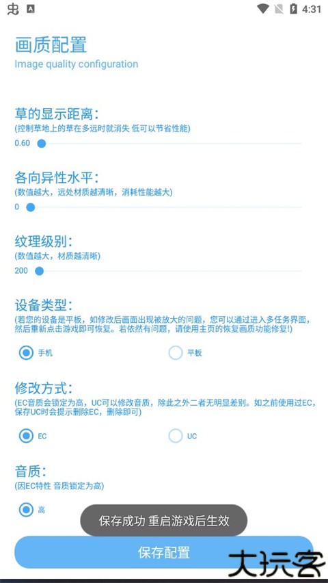 保存设置后会弹窗提示,随后重开游戏体验升级画质。