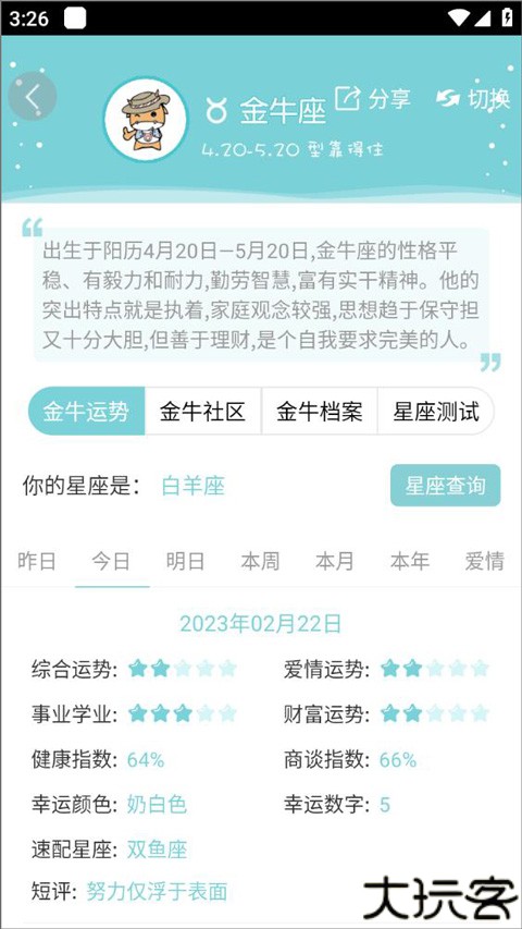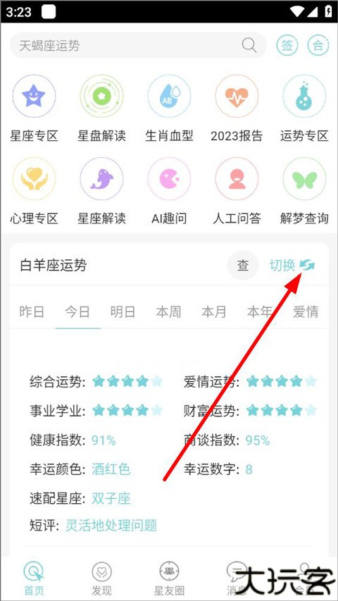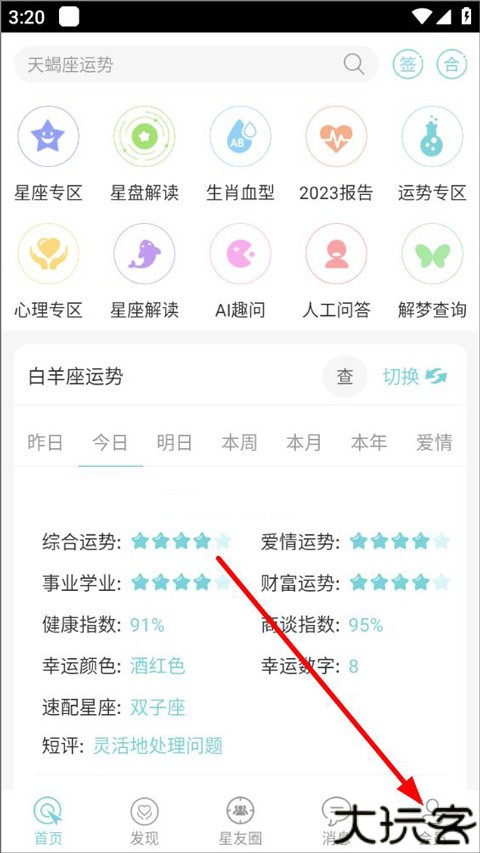 1、软件里会有星座专区,星盘解读,星座运势等。