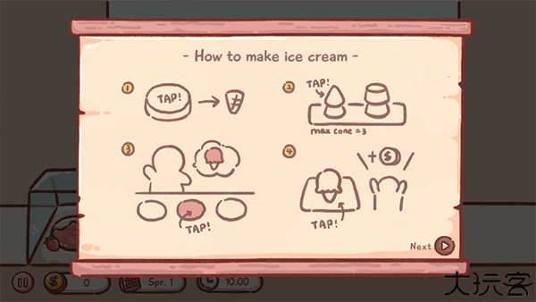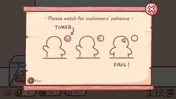 2、新手教程会展示制作冰淇淋流程,并提醒你留意顾客耐心值。