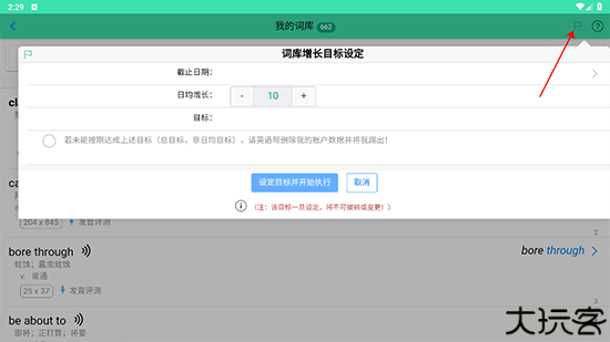 在词库界面,找到并点击右上角的“小旗子”图标,开始设置学习目标。