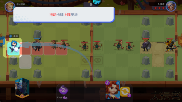 1、进入星际护卫队游戏后,玩家要拖动屏幕下方的卡牌上阵英雄。