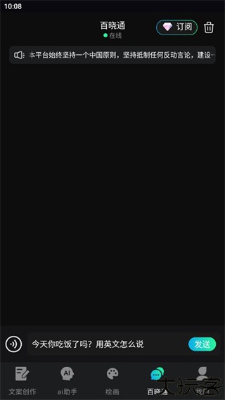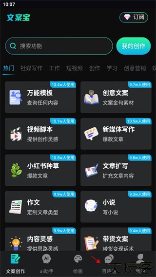 打开文案宝,点击进入“百晓通”选项,准备提问。