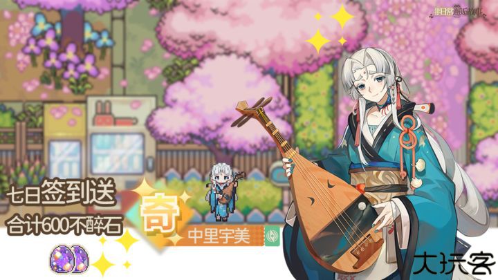 1、连续登录七天可获得中里宇美、装饰物与养成道具共600不醉石。