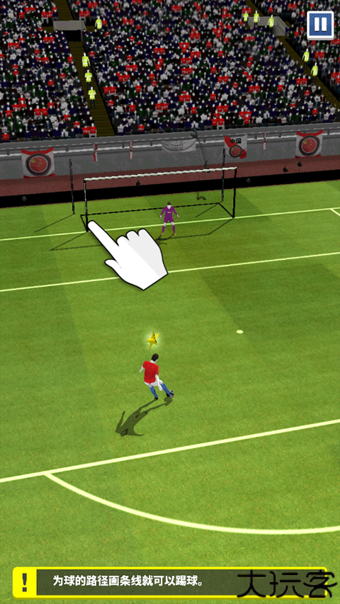 拖动轨线设定射门方向,直击目标破门。