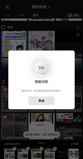导入素材后系统全自动剪辑,适合剪辑小白使用。