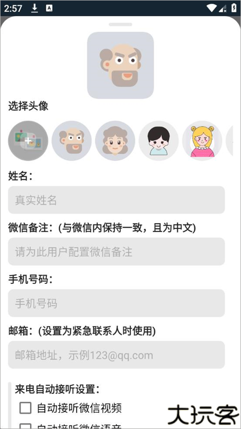 1、进入联系人管理页面,添加微信好友并设置通话方式及自动接听。