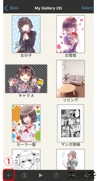 2、点选加号图标添加画布,所有创作都将保存在此处。