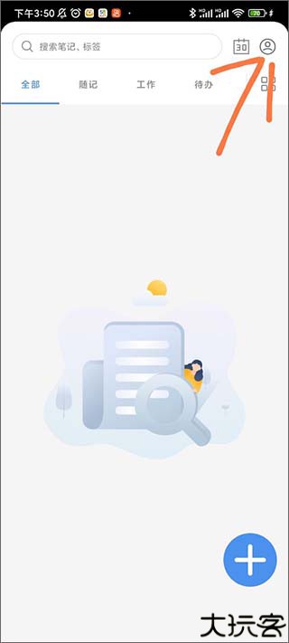 1、打开无忧备忘录,点击右上头像进入账户界面。