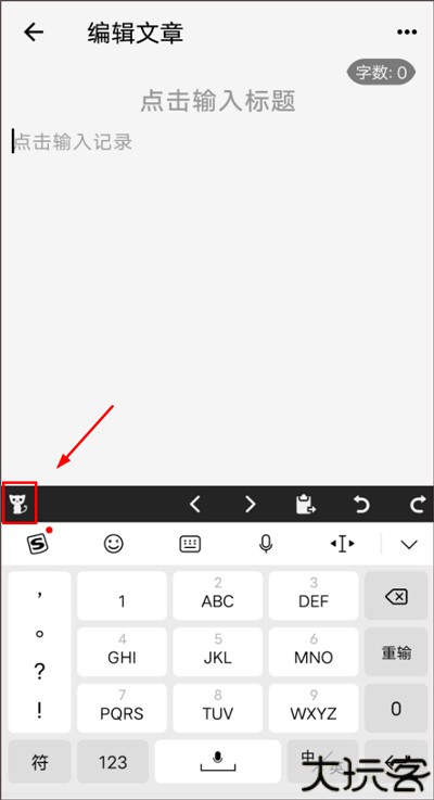3、编辑时点击键盘上方工具栏左侧猫咪图标,打开更多选项。