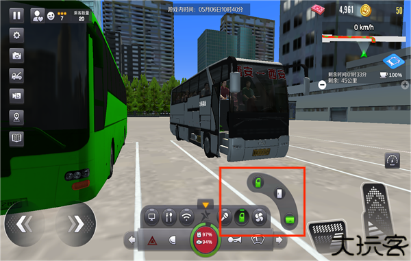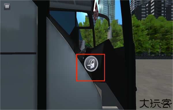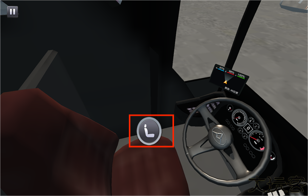 3、点击指令进入驾驶室,准备车辆启动操作并控制方向盘。