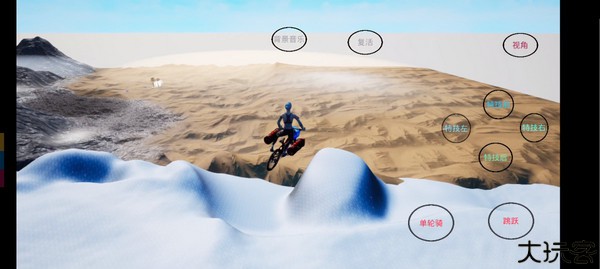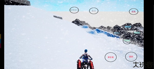 2、屏幕的右下角有不同的按钮都有中文注释,包括单轮骑、跳跃、往左、往右等等,点击后便会做出相对应的动作。