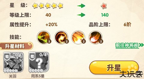 3、多余武将可合成升星,提升稀有度同时增加技能威力。