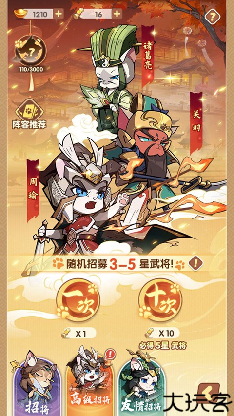 5、普通、高级、友情招募,都是快速集结武将队伍的重要渠道。