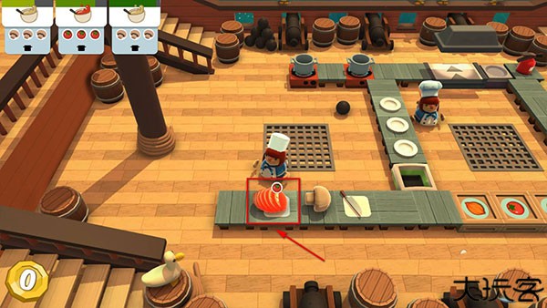 5、读条结束后,就切完菜了,就可以给客人端过去了。