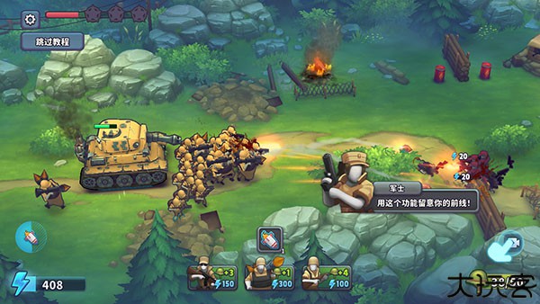 弹上膛汉化(Guns Up!)是精致的策略动作战斗手游。游戏使用创新战斗模式,地图简单只有一条路,但塔防不再是死守,而是你来我往的激烈对战,直到一方全军覆没。随着游戏深入,玩家等级提升,可用的增援卡牌种类丰富,有进攻、防守和骚扰多种策略。比如对方兵力强大时,配合烟雾弹和地雷就能扭转局势。弹上膛汉化不只是比拼兵力,地形和己方基地防守同样关键。合理利用地形阻挡敌人攻击才是取胜关键,虽然看似简单,但其实考验策略和脑力。