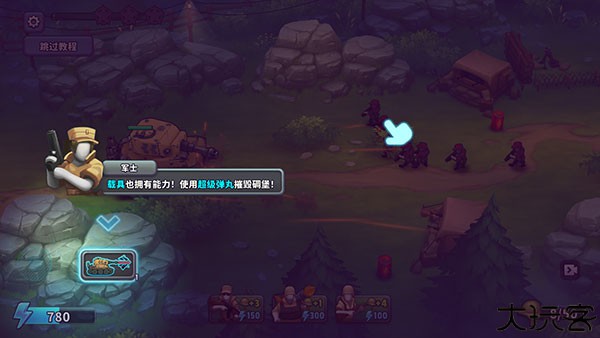 2、玩家所控制的载具也拥有特殊能力,使用超级弹丸摧毁碉堡。