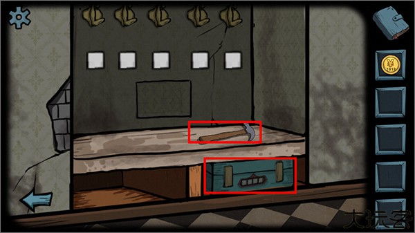 从左边的门进入,收集锤子和密码箱。