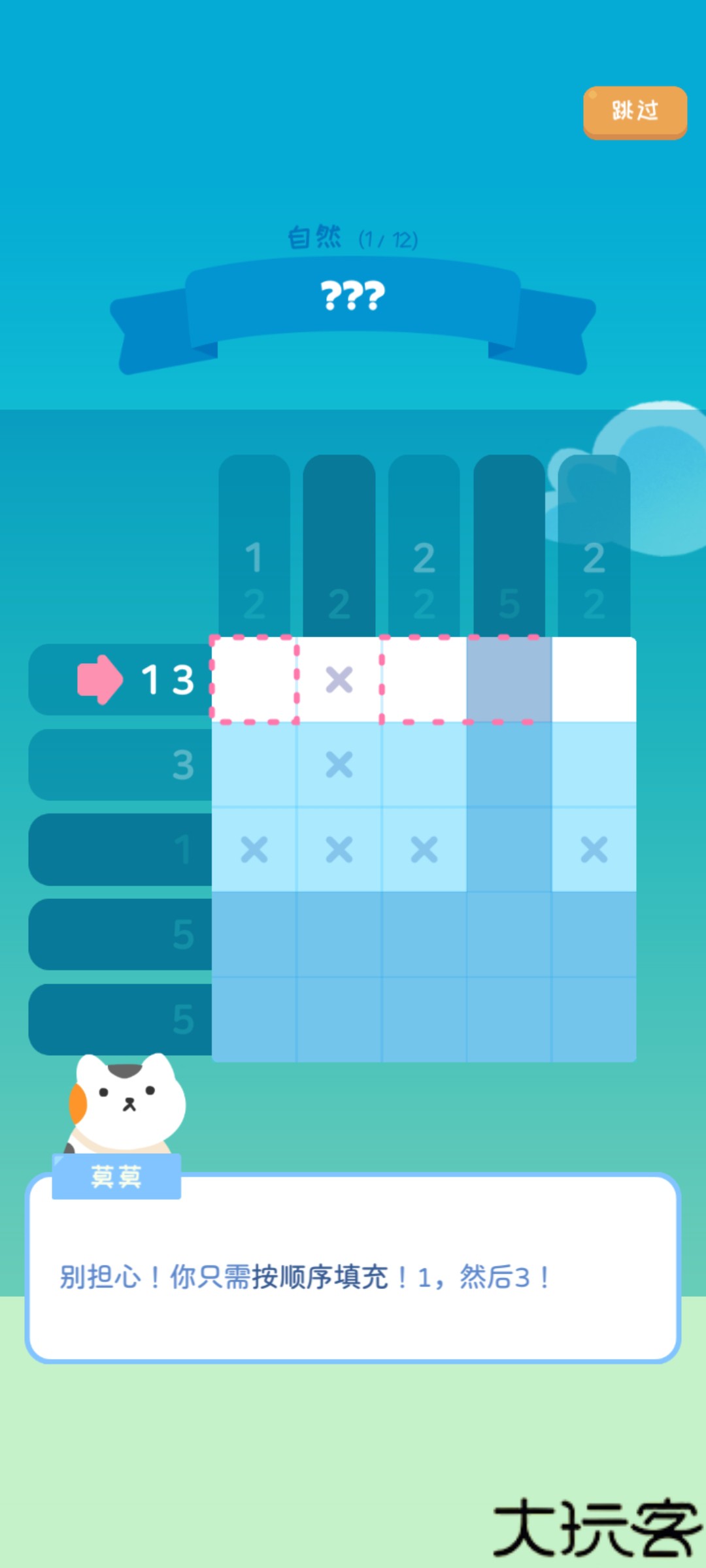 4、按顺序完成数字要求,例如“1 3”表示先填1格再隔开填3格。