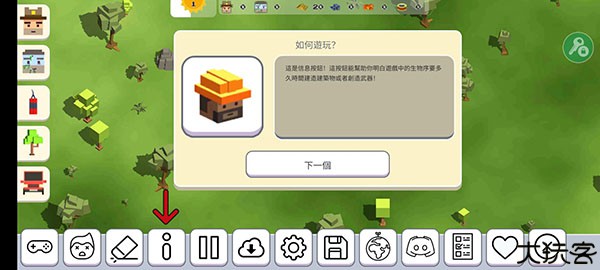 8、这是信息按钮,这按钮能帮助玩家明白游戏中的生物需要多久的时间去建造建筑物或者制造武器。
