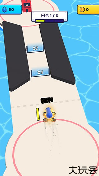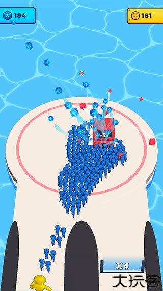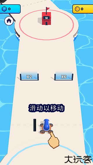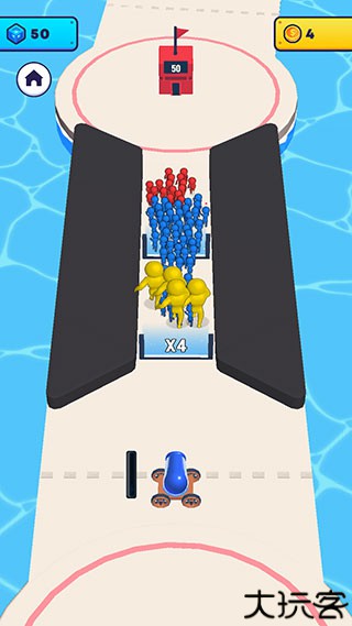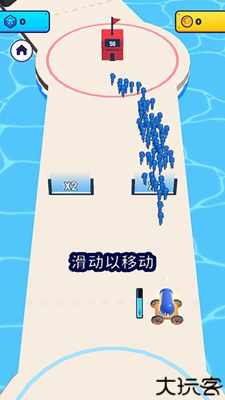 2、按住大炮不松手就可以源源不断地发射出炮弹人,炮弹人经过倍数门会获得数量上的增长,建议朝着倍数较高的门发射。