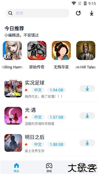 1、安装后进入首页,可浏览精选游戏内容与热门推荐。