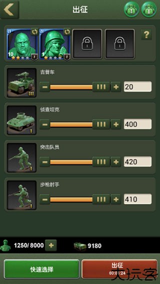 逐步升级坦克、火炮、喷射兵与狙击手,全面提升战斗力。