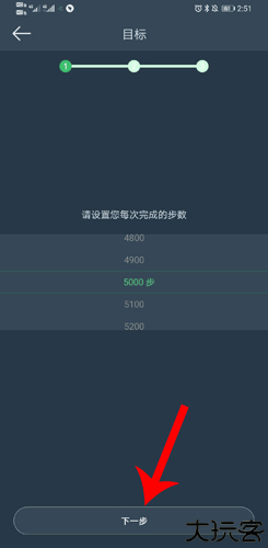 3、挑选你的每日目标步数,作为监控与提醒依据。