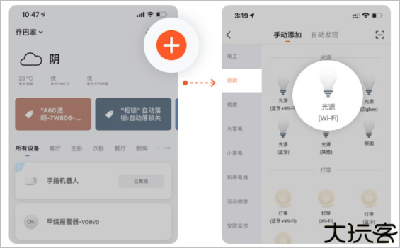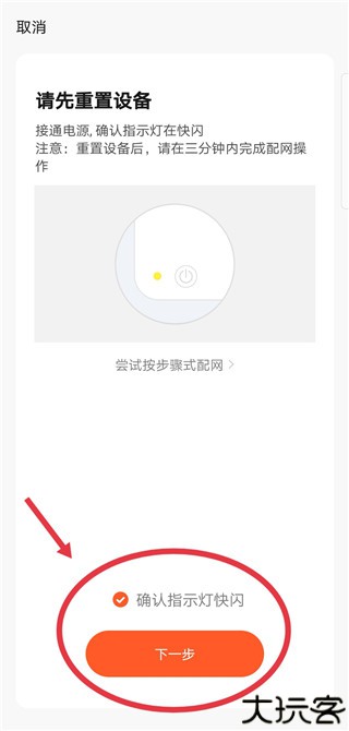 照明设备可反复开关3次。其他设备可长按复位键5秒。指示灯闪烁表示设备已进入配网模式。