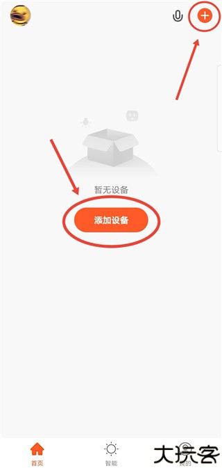 1、这里以配置“ss190”智能音箱为例,先注册登录好软件后点击添加设备或是右上角+号来配置。