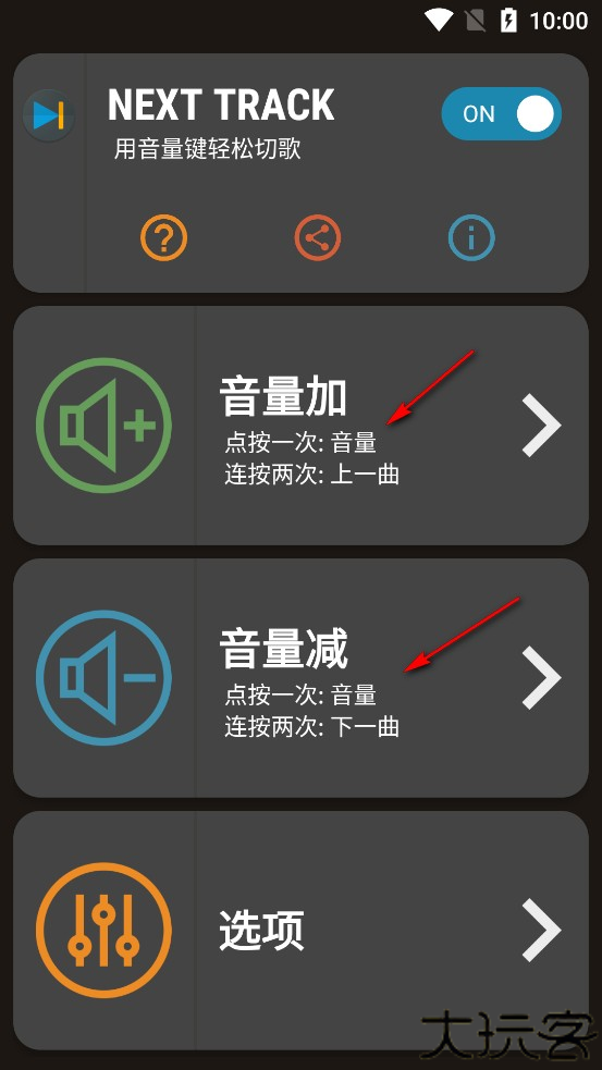 Next Track安卓提供便捷的快速切换音乐体验,即使屏幕关闭,也能通过音量键轻松跳过曲目。用户可自定义单击或双击操作,并设置多种功能选项。支持利用音量键实现切歌、静音或暂停,兼容主流音乐播放器。用音量键切歌next track软件安卓下载后,通过重新映射音量按钮,让用户自由选择单击、双击或长按,实现精准的音乐控制。