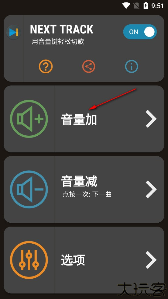 1、点击【增加音量】按钮进入设置界面。