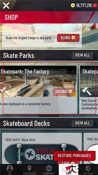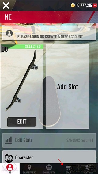 1、打开真实滑板中文安卓版进人游戏界面中,来去找到商城购物车。