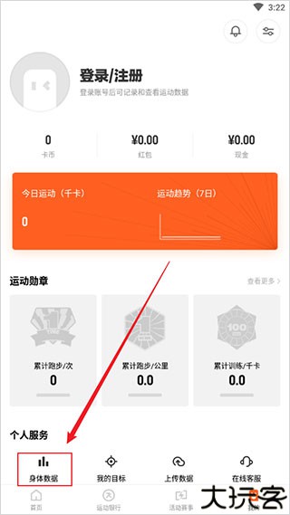 3、在【我的】的栏目上,用户点击个人服务中的【身体数据】。