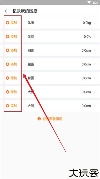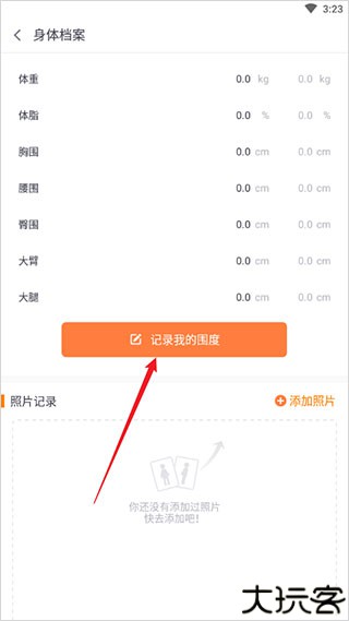 4、进入到身体档案页面中,点击【记录我的围度】。