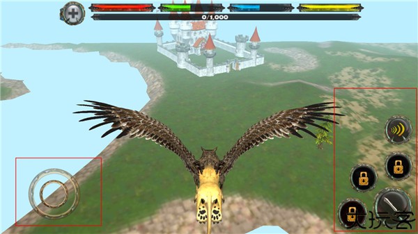 2、长按并滑动屏幕左侧的摇杆,玩家就可以控制狮鹫的移动方向。