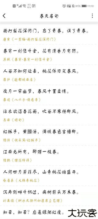 3、系统会自动展示所选类型的古诗词,便于用户整体浏览。